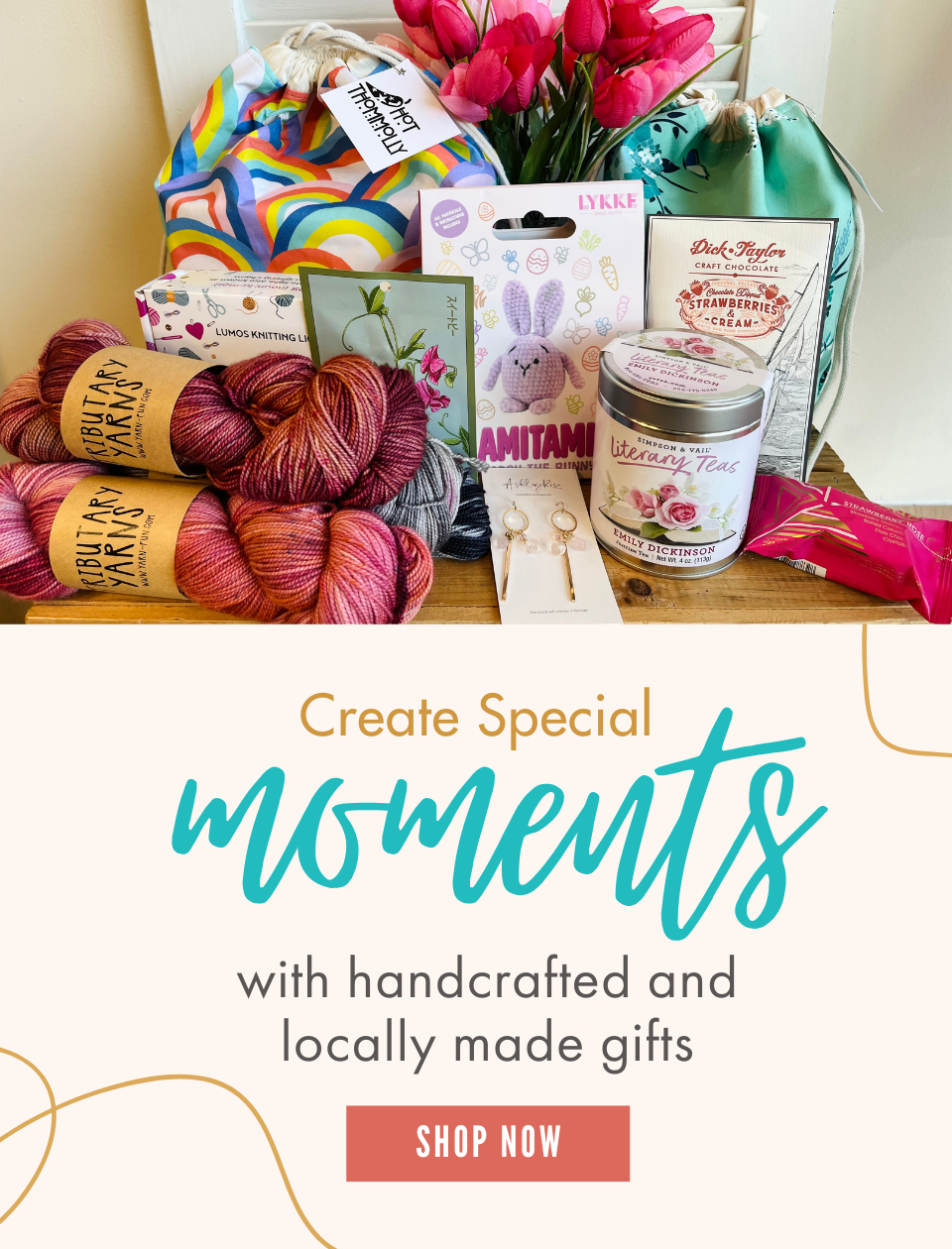 Boxes will include a variety of items that may include candles, special soap or bath products, tea, pretty socks, and always some chocolate! You can choose boxes with or without yarn. Boxes with yarn will include a pattern or pattern suggestion.