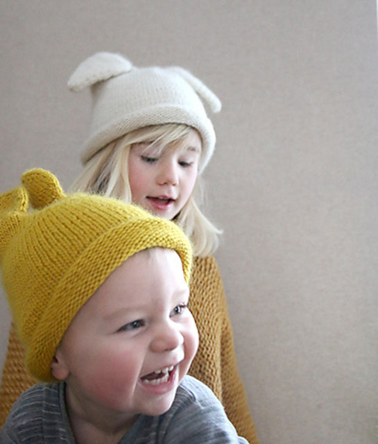 I think this Bunny Hat is super cute but also simple to make. It comes in sizes from 6 months to 6-8 years. I’m recommending either Vintage from Berroco or the new cotton/wool blend Turay from Amano for it. You could make it in any color and we have lots to choose from. One skein of yarn is plenty for all but the largest size.