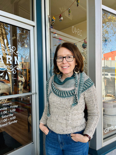 Crescent shaped shawls are fun to wear. I wanted to design a two-color shawl using an offset crescent that plays with texture. Slipped stitch patte...