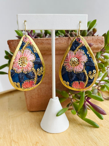 Vintage inspired earrings are exquisitely embroidered with delicate floral designs. Make a statement with these beauties. Approximately 2 1/2" lon...