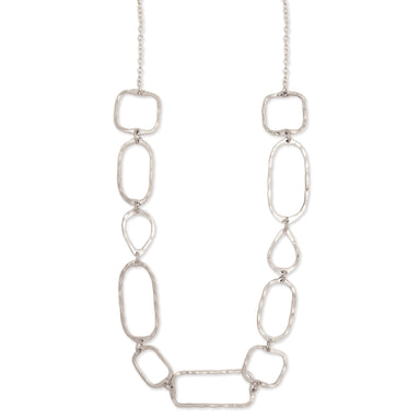 This necklace is a beautiful, modern design that you'll wear again and again. The necklace features large hammered square, teardrop and oval geomet...