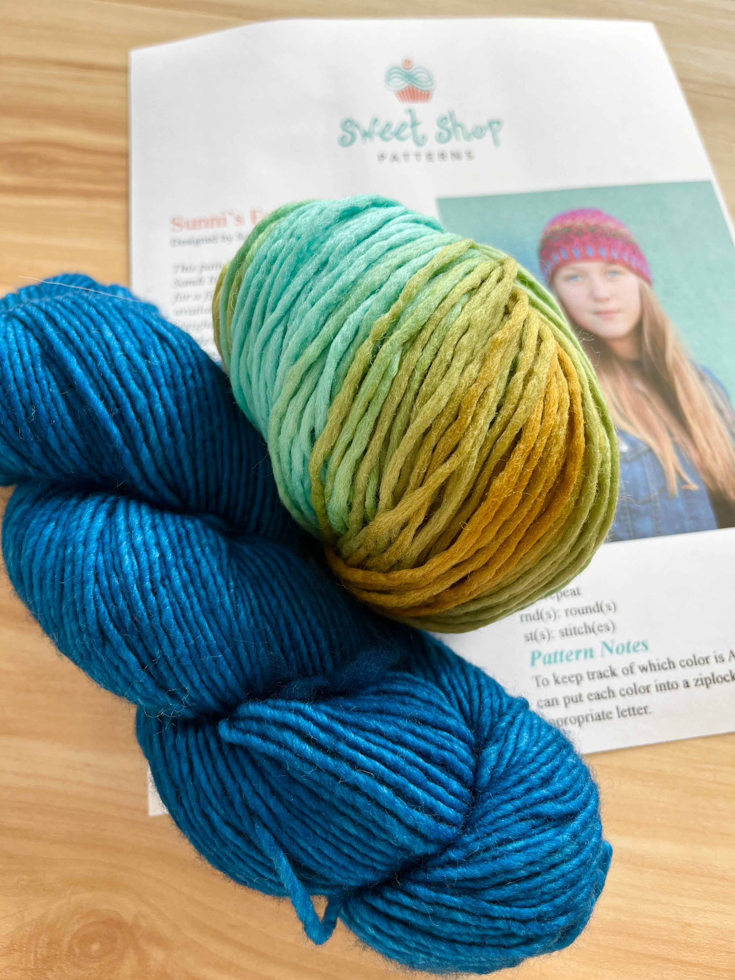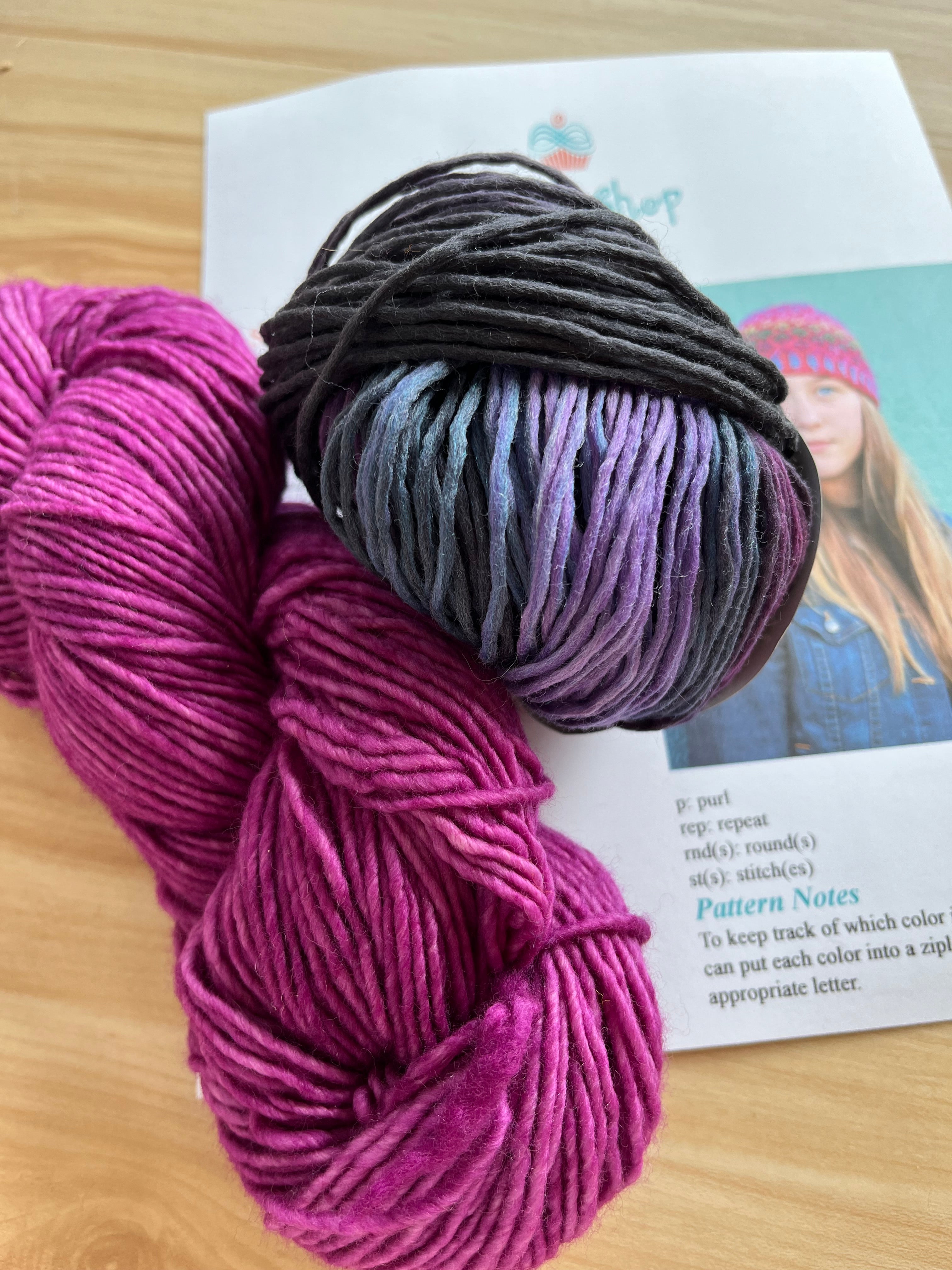 Do you want to knit a pretty and fun hat for yourself or someone you love as a gift? This hat is warm, cozy, colorful and so soft! Plus it’s really fun to knit. I’ve put some of my favorite color combinations of Malabrigo Merino Worsted and Reggae Ombré together for you. The kit comes with the yarn and the pattern. You'll need a 16-inch circular needle and DPN's in size US 8.
