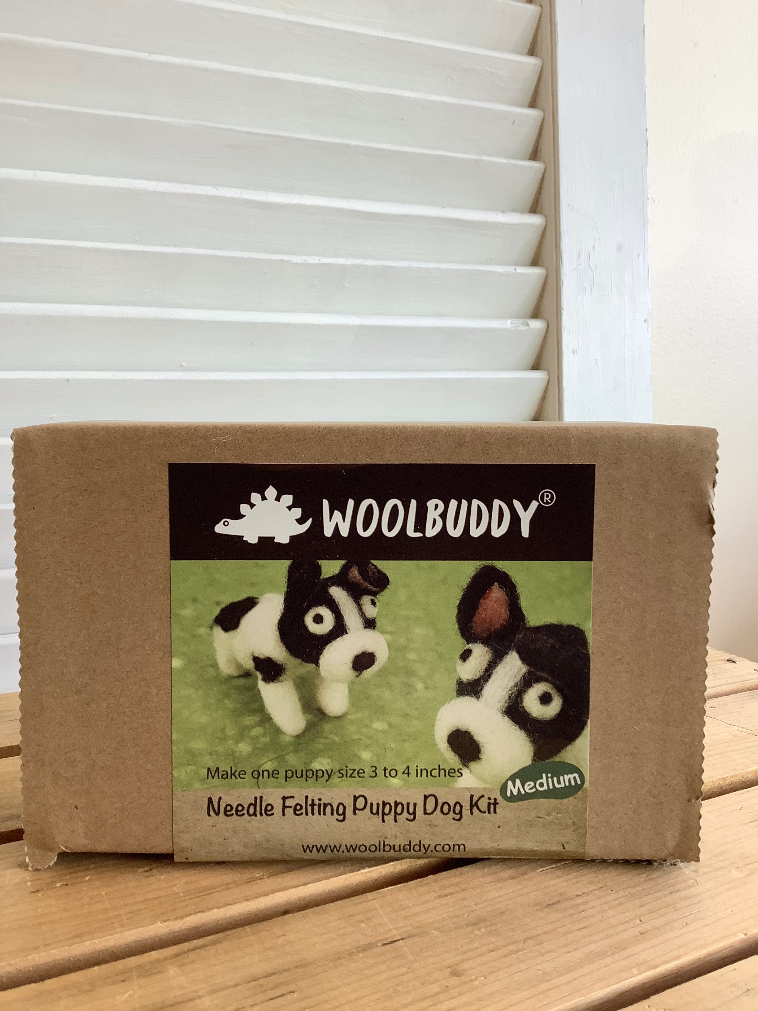 The puppy dog kit includes - felting wool, 2 felting needles and written instructions to make a 3-4 inch puppy dog.