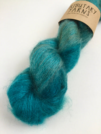 This dreamy, lightweight blend of mohair and silk has a soft drape and a cloud-like halo. Treat yourself to something luxurious! 70% mohair, 30% s...