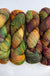 Fingering weight, hand-dyed yarn. This yarn is dyed right in our shop!