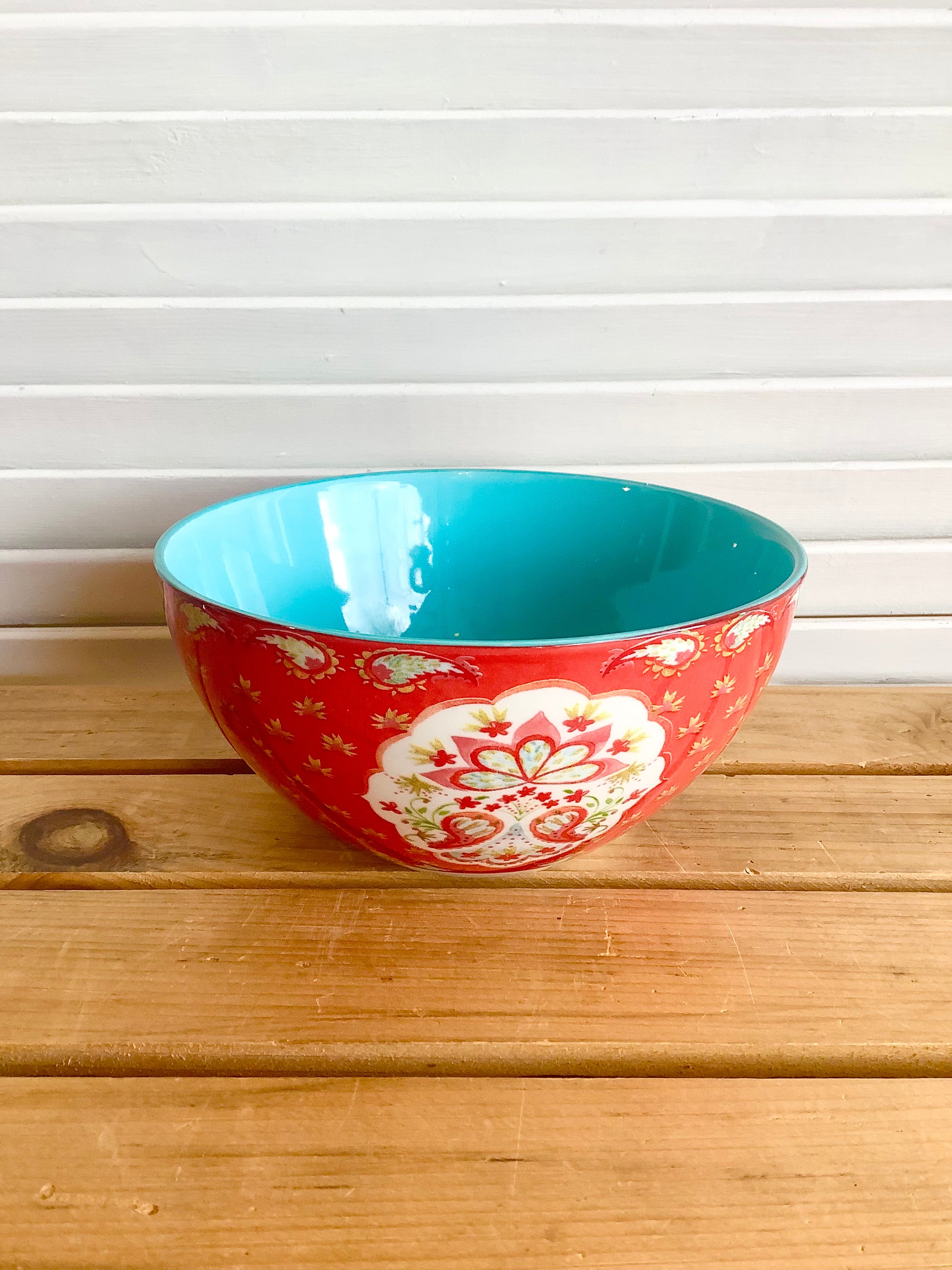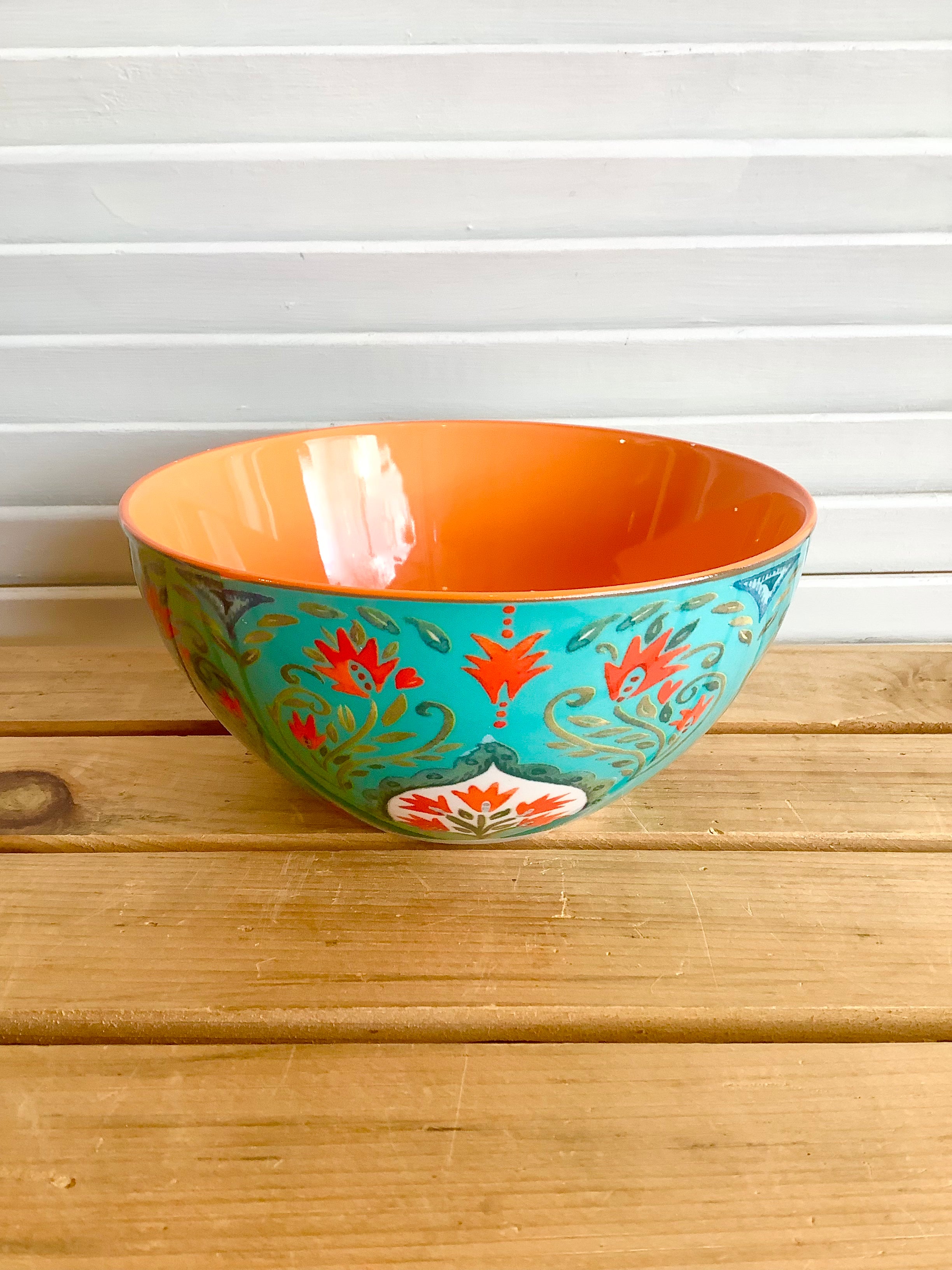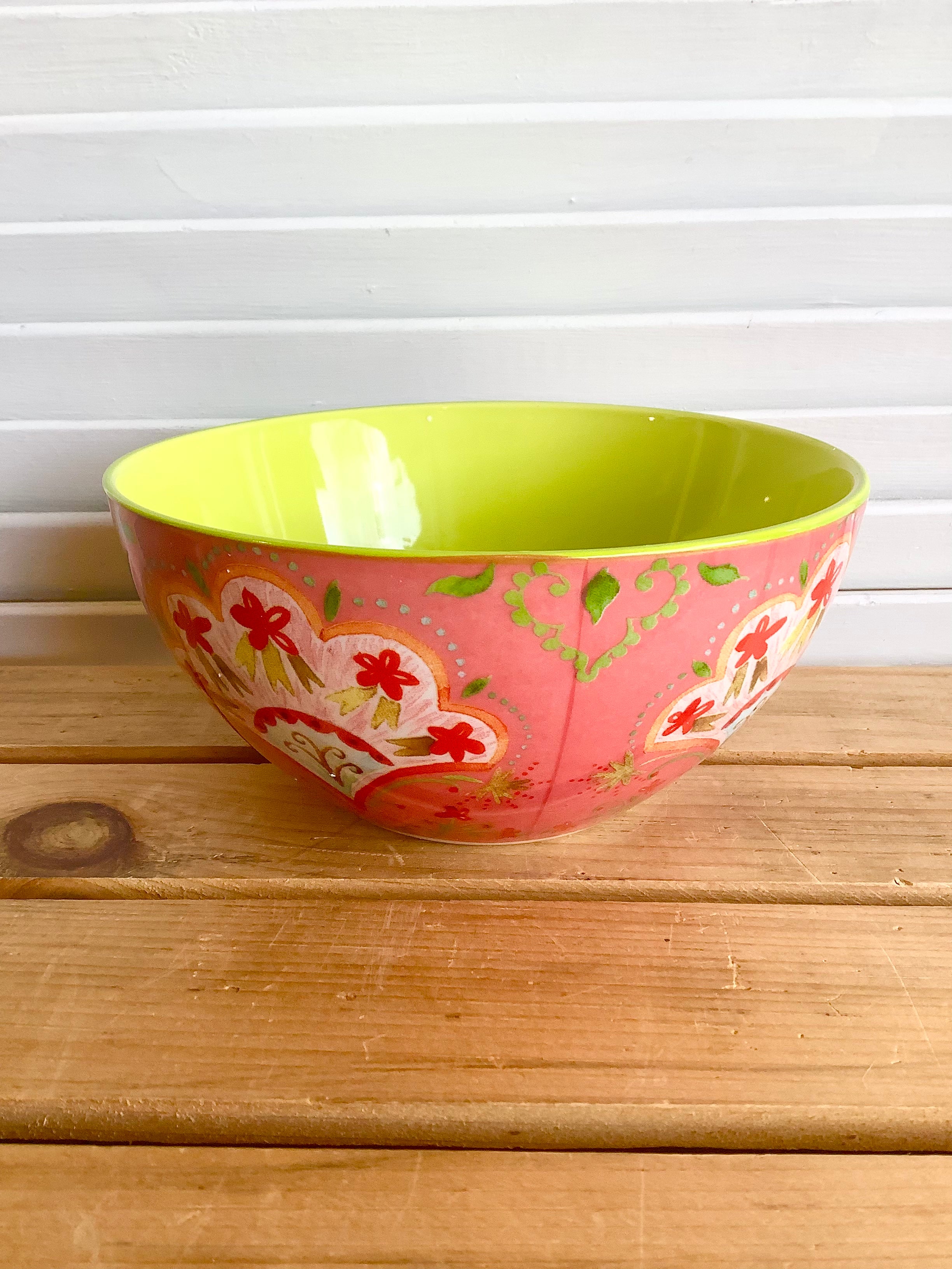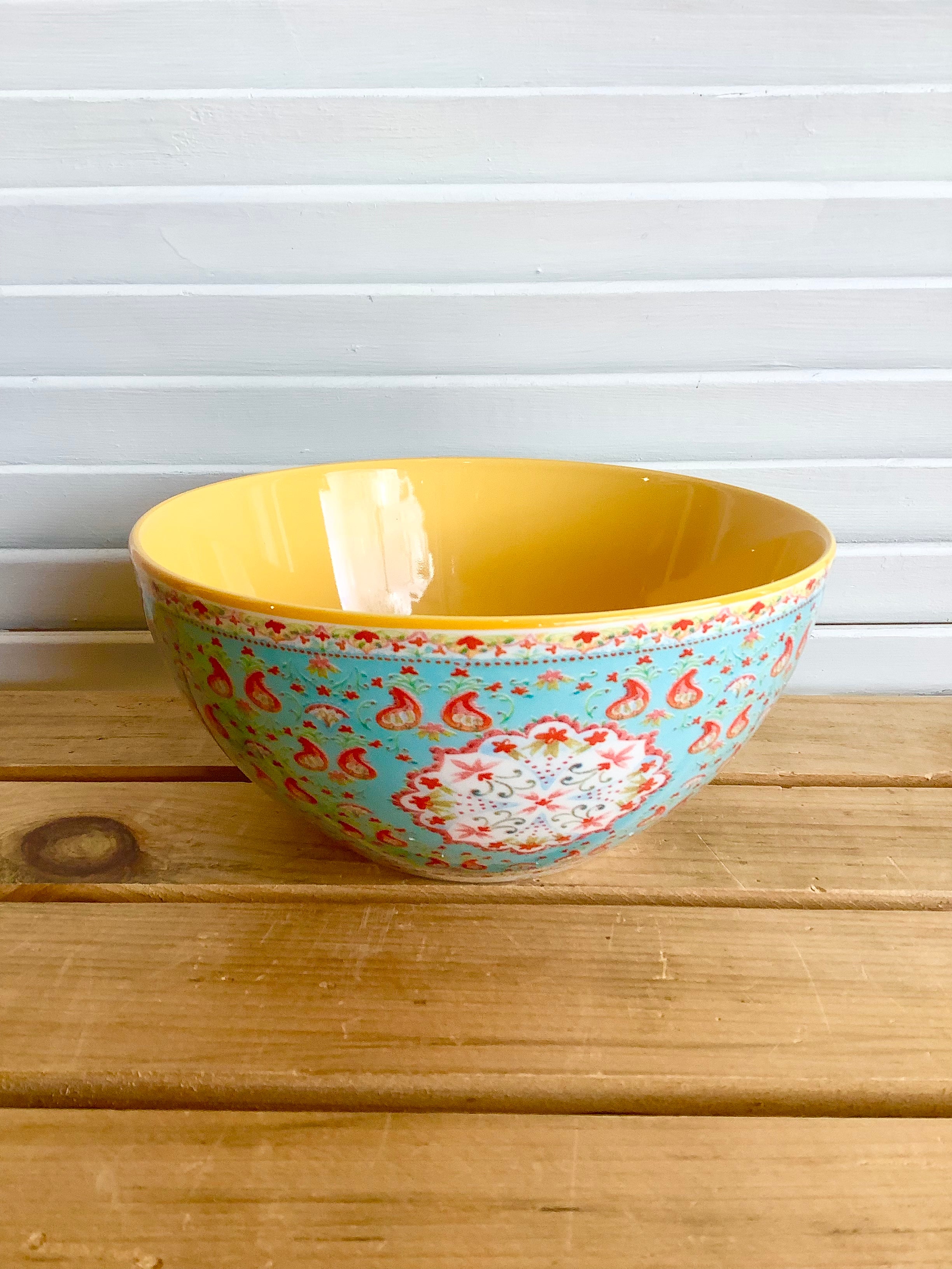 The Francesca All Purpose Bowl is a colorful celebration of design and versatility. Each bowl is a vibrant canvas that features an intricate and cheerful pattern, reminiscent of traditional folk art. The lively colors inside the bowls are perfectly complemented by the detailed motifs on the outside, making each piece a work of art that is as functional as it is beautiful. These bowls are perfect for soup, cereal and more. Collect them all!