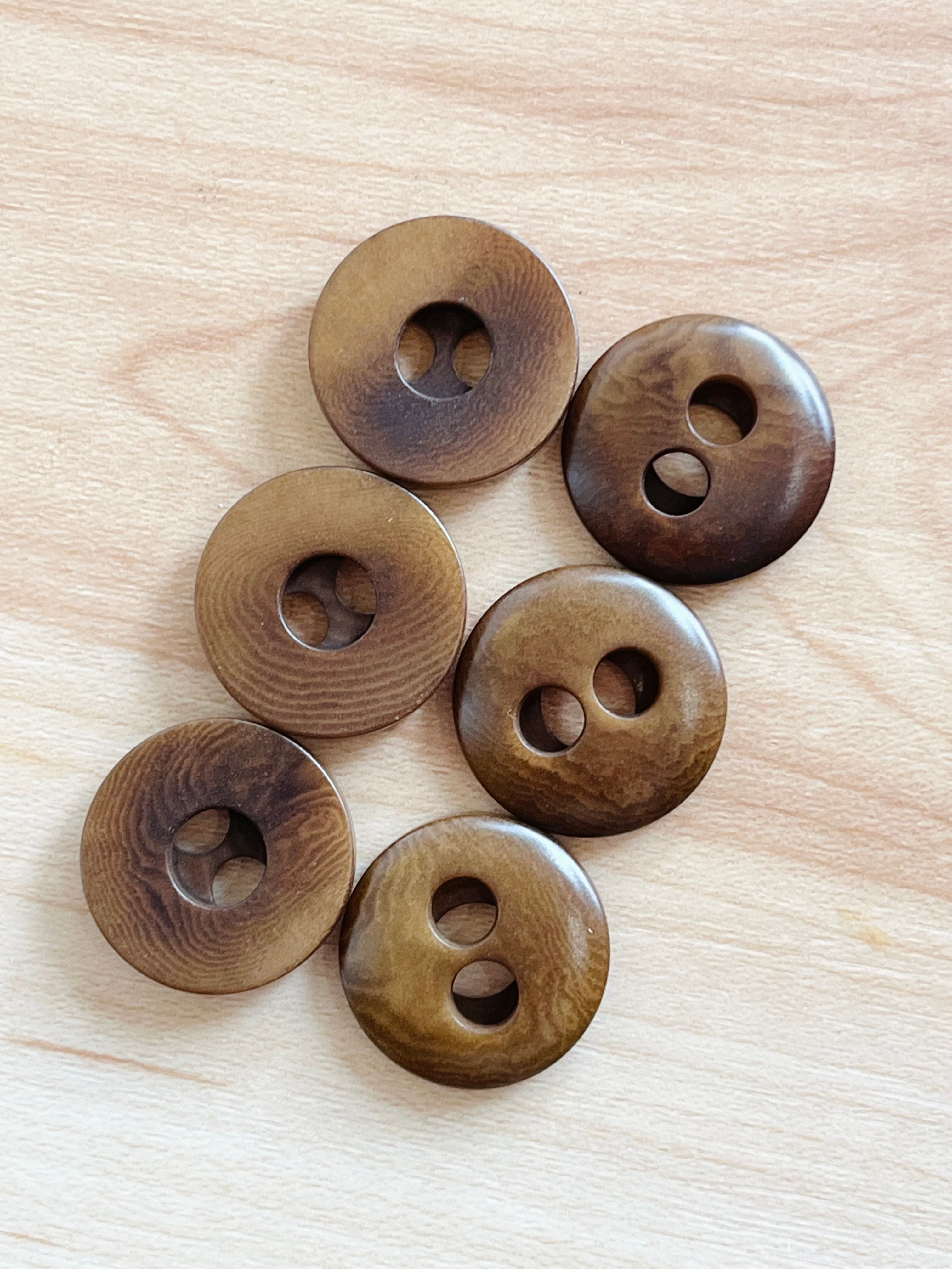These Corozo Nut buttons are a wonderful size and shape for your sweater or cowl project. We love the smooth shape and indent design. These are 3/4-inch buttons.