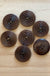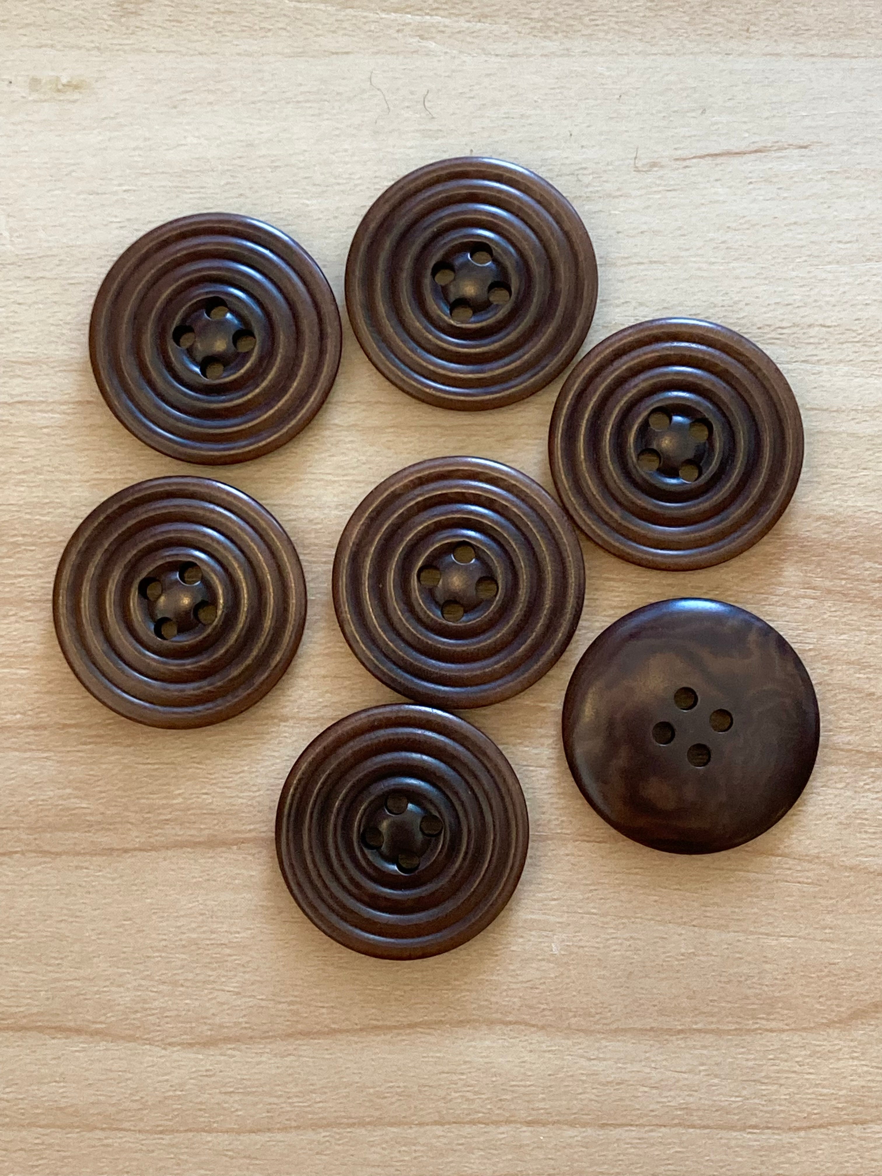 These buttons are so tactile and pretty. We love the grooved swirl and the beautiful colors. Corozo nut is ideal for pairing with your hand knits. These are 1-inch buttons.
