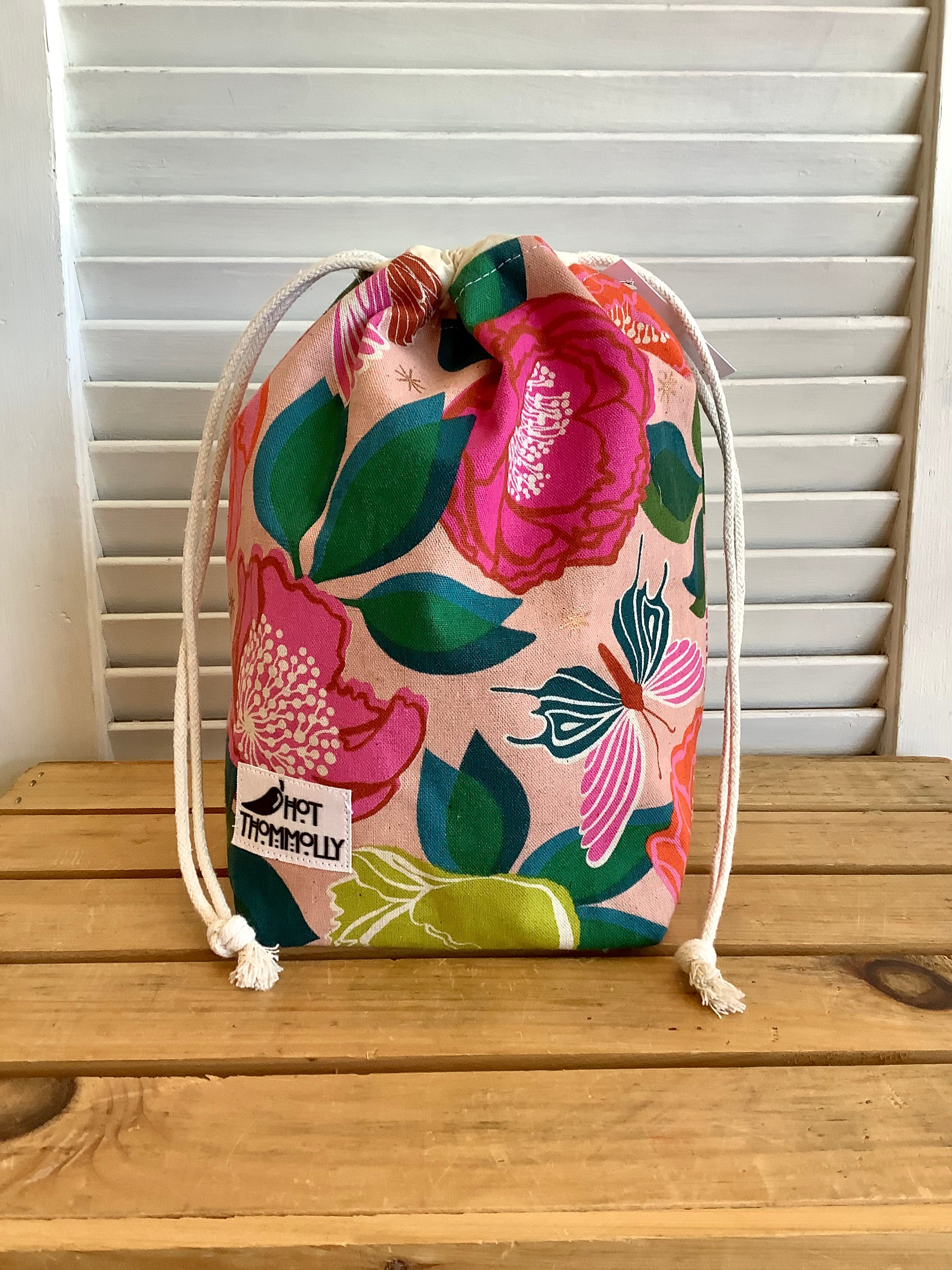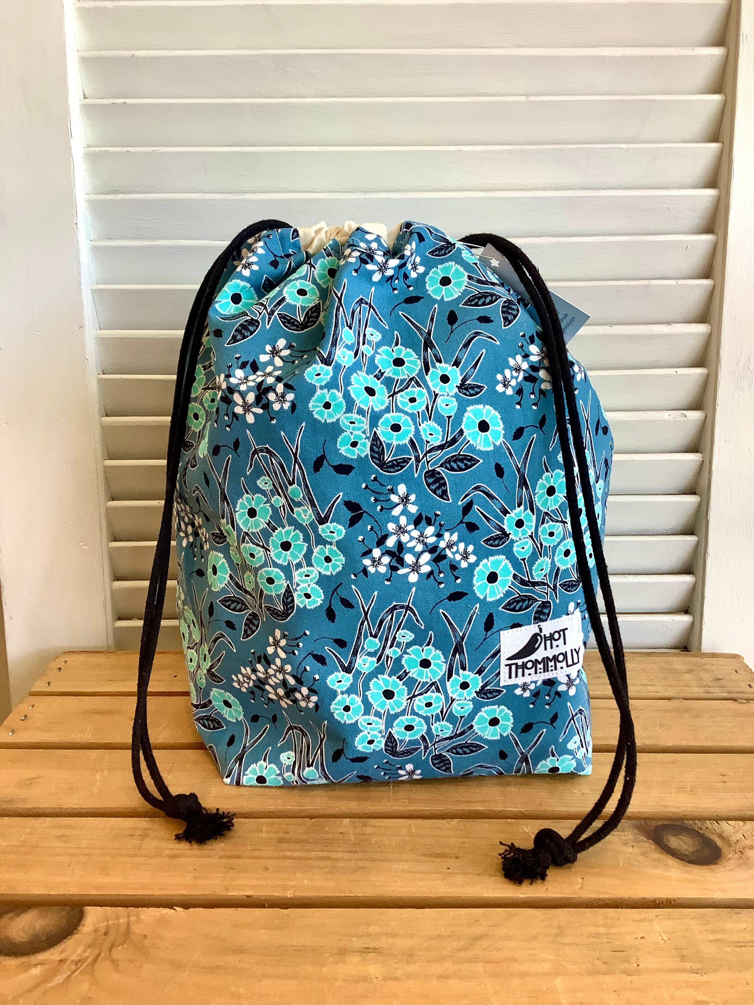 Who doesn't need another project bag?! These drawstring bags are fun and beautifully made. The maker chooses super cute fabrics. The small bag is perfect for your smaller projects like hats, socks or fingerless gloves. The large bag works for shawls or sweaters.