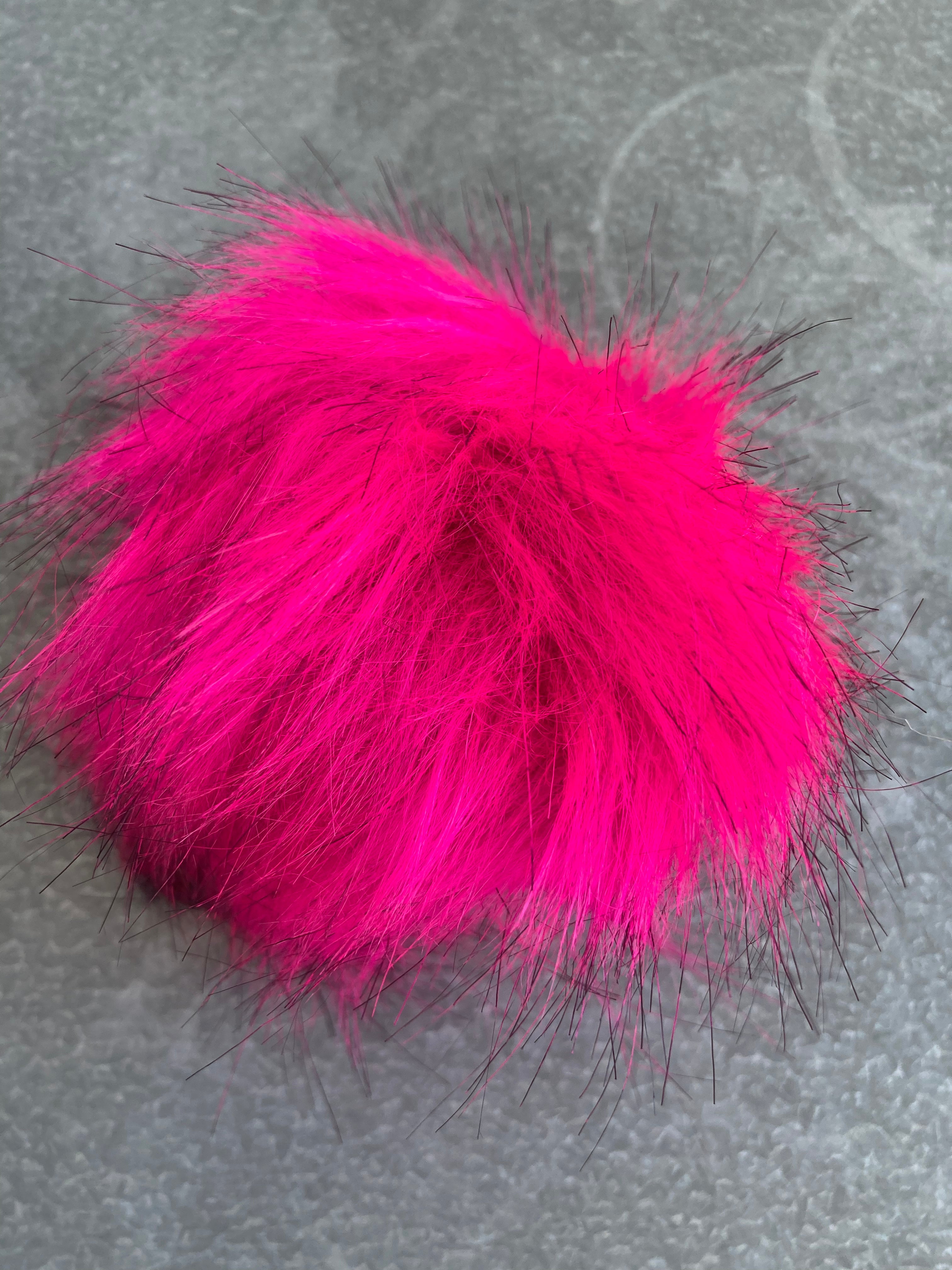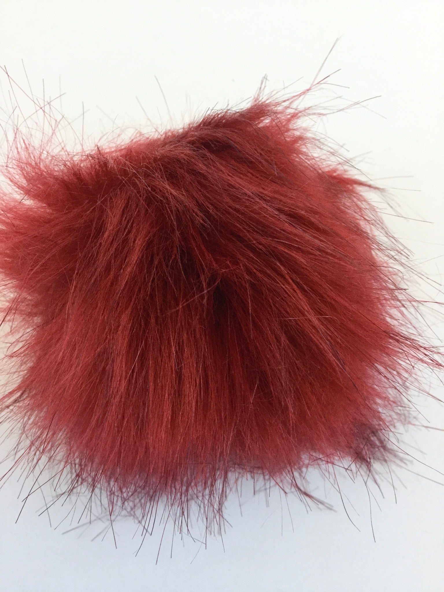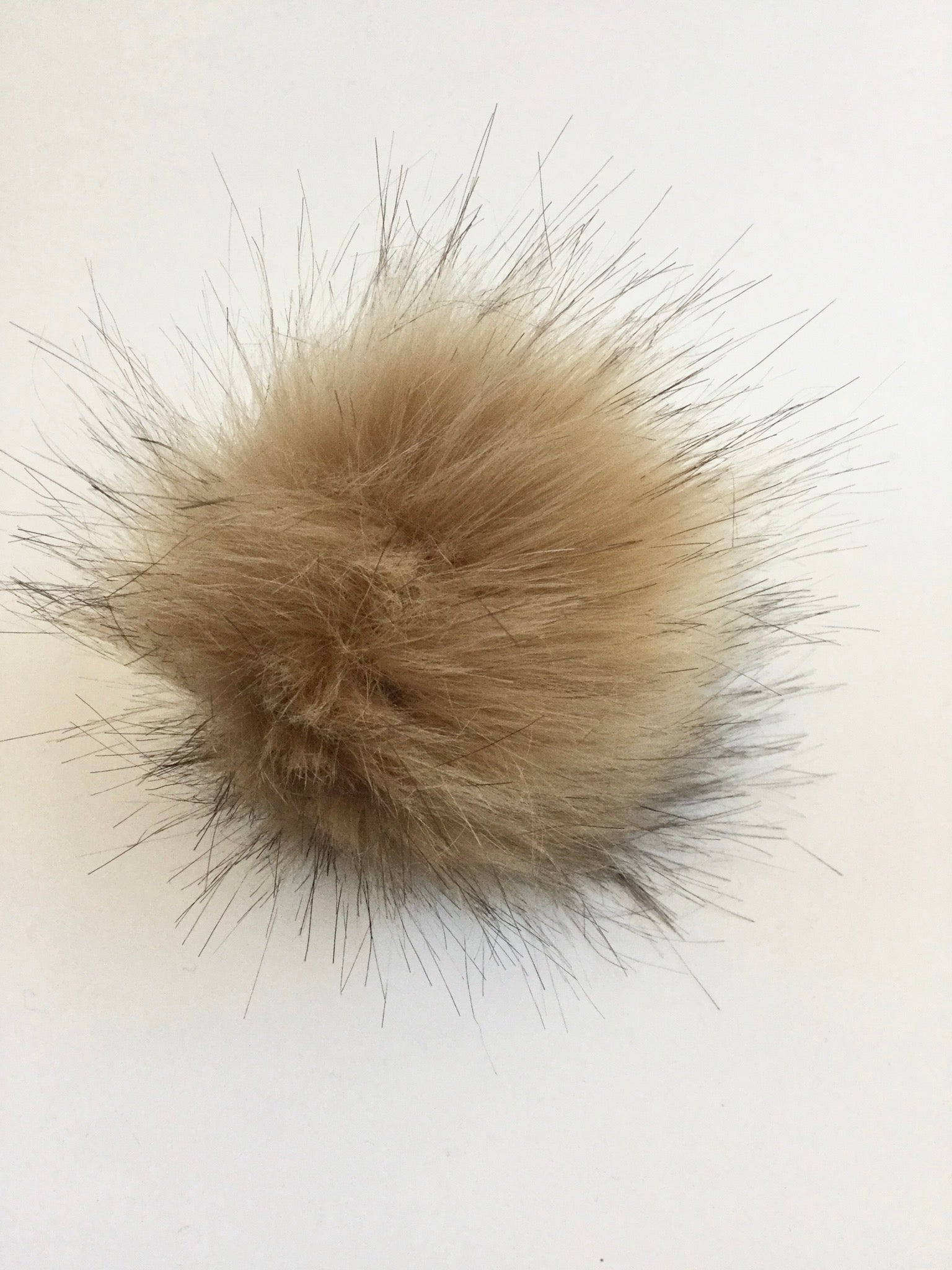 These faux fur pom poms are perfect to add to the top of your knit or crocheted hat. The snap makes them easy to remove to wash your hat. This style is approximately 4 inches across.