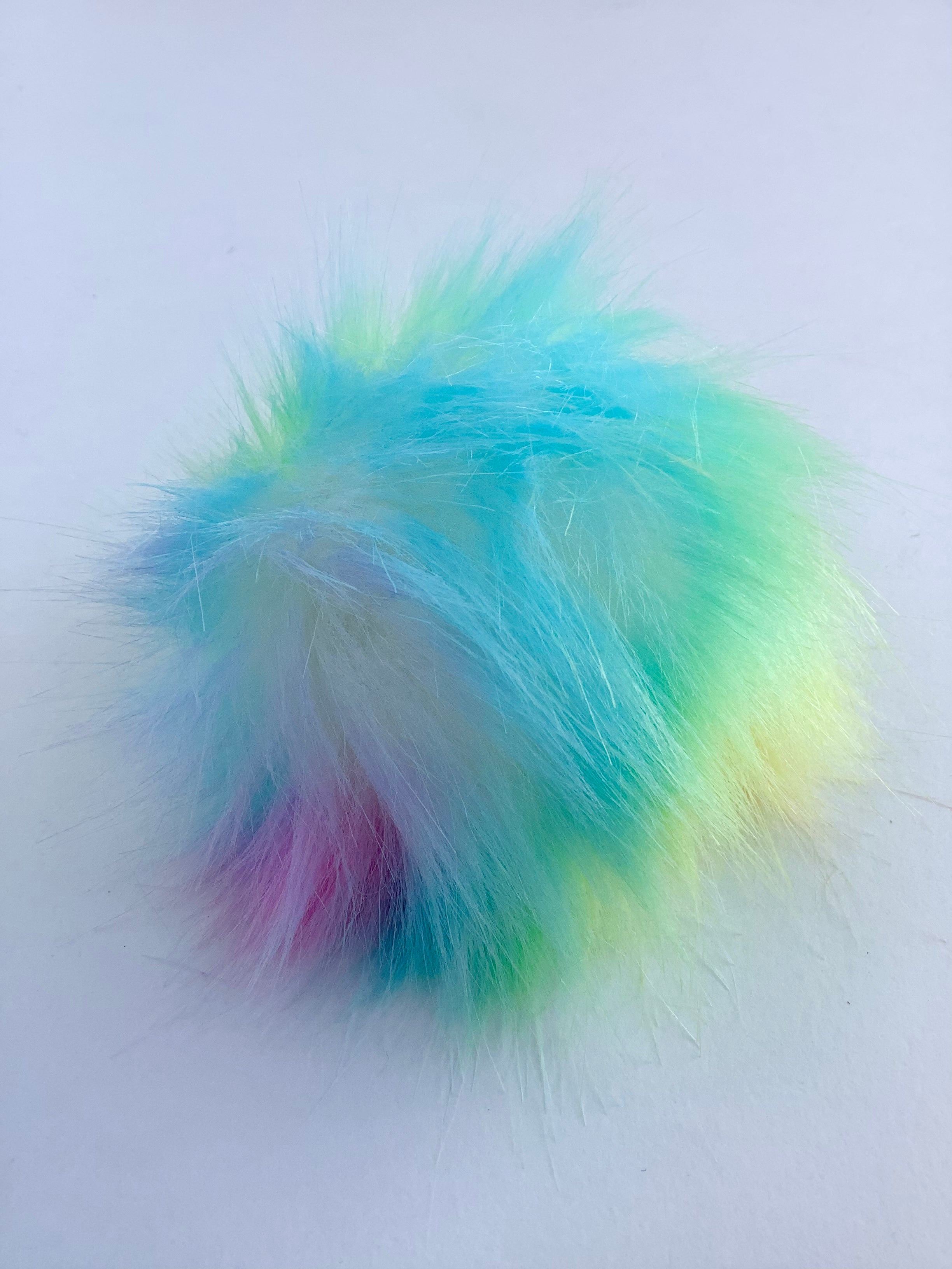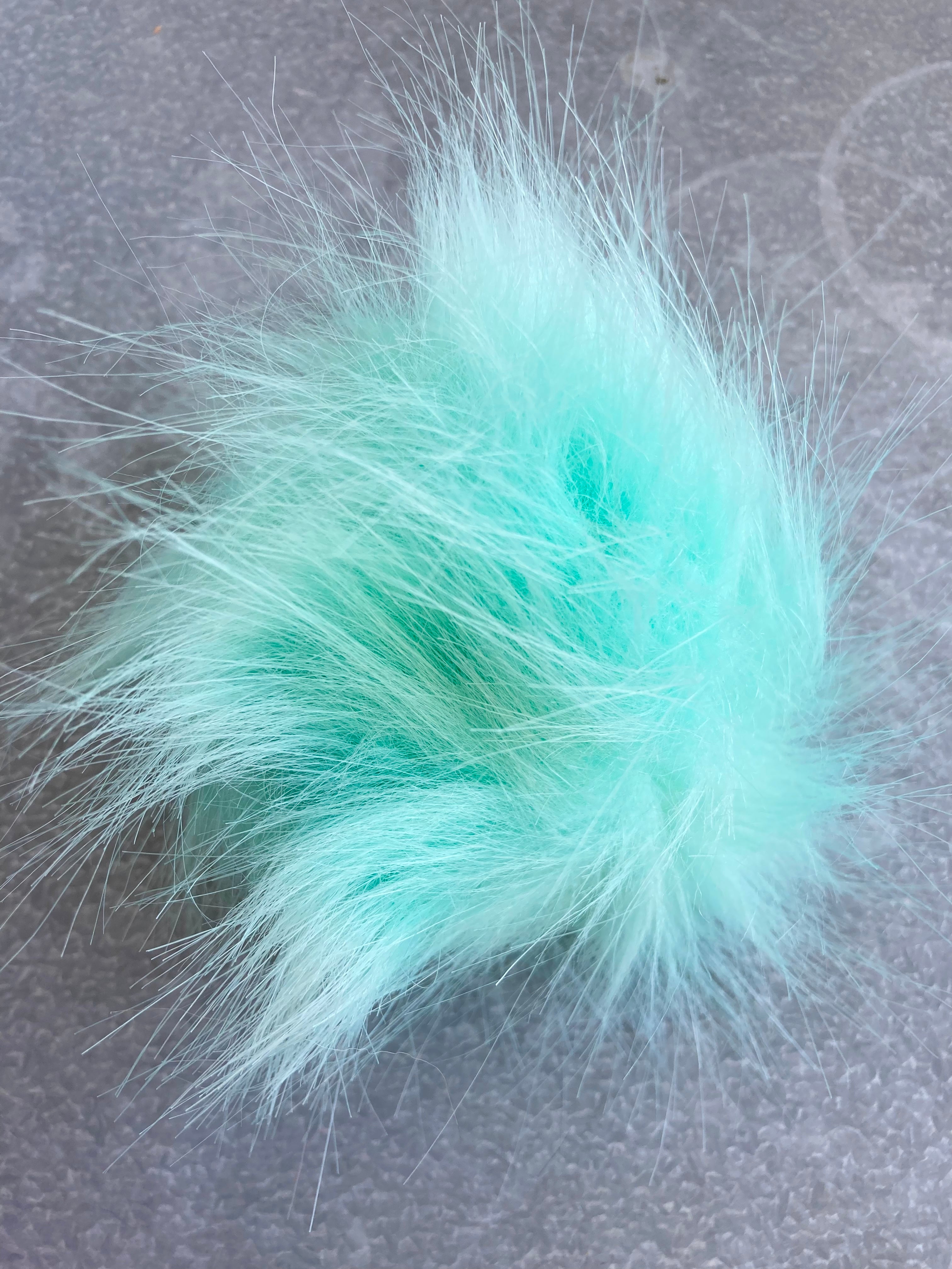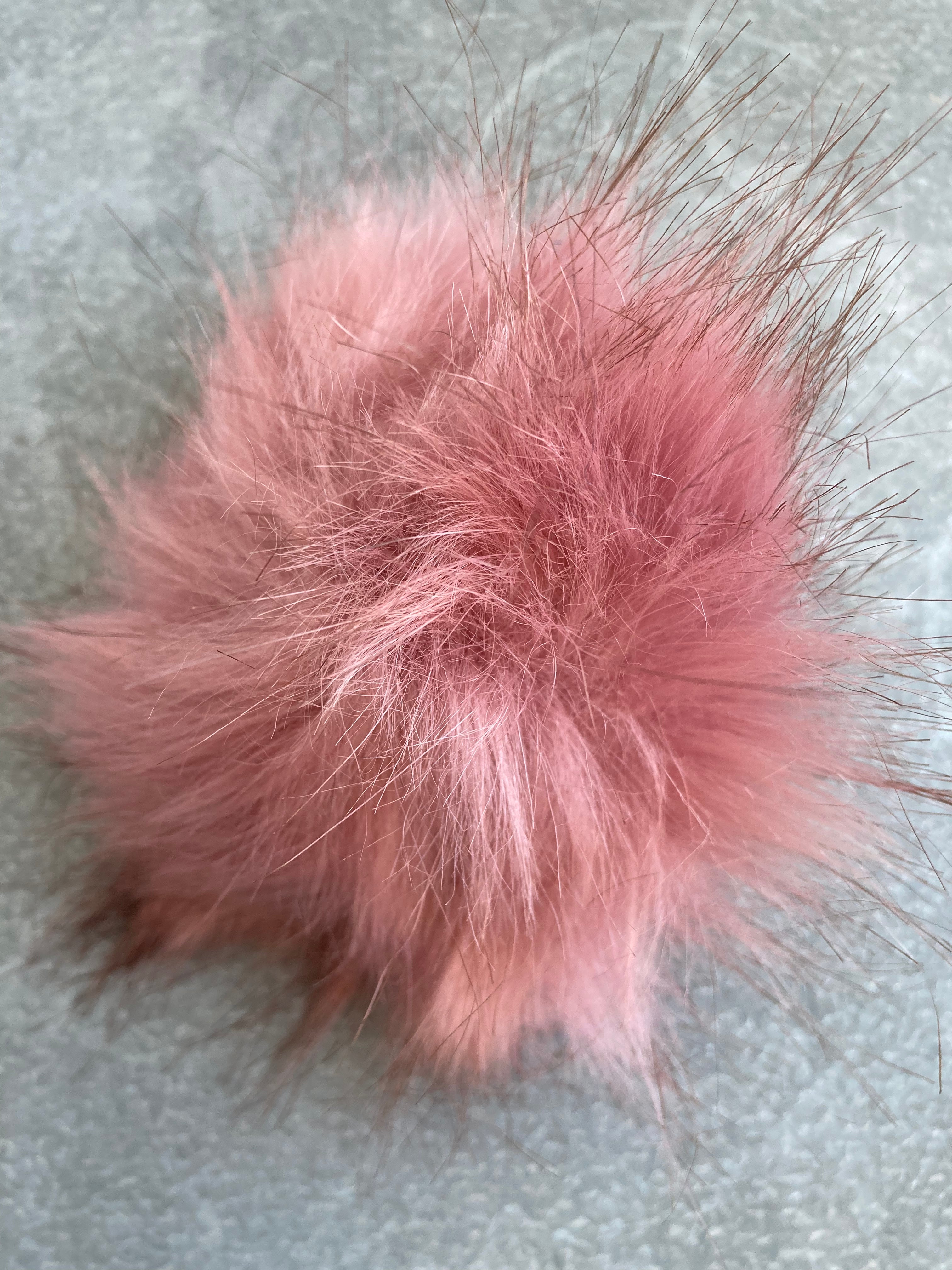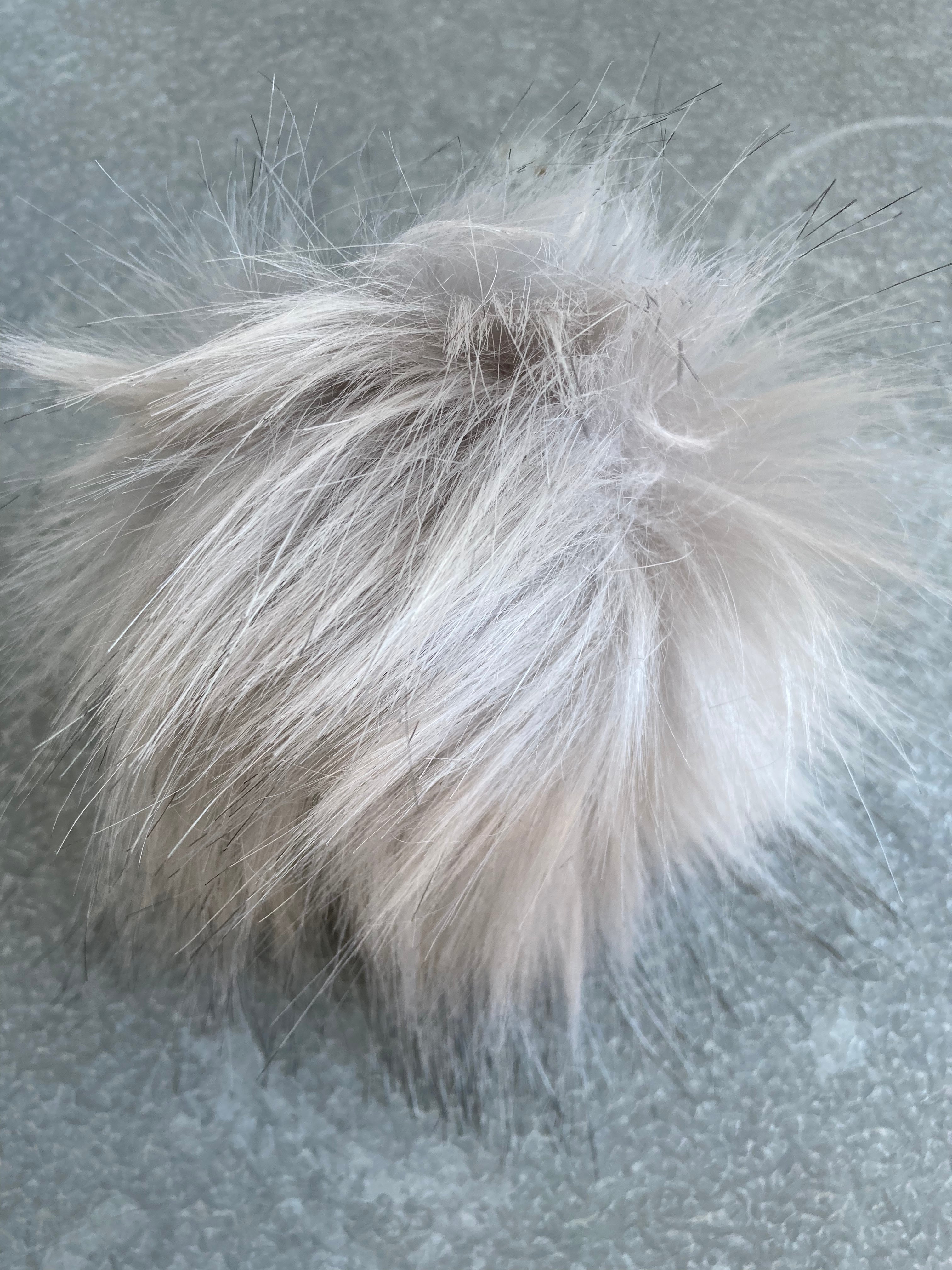 These faux fur pom poms are perfect to add to the top of your knit or crocheted hat. The snap makes them easy to remove to wash your hat. This style is approximately 4 inches across.