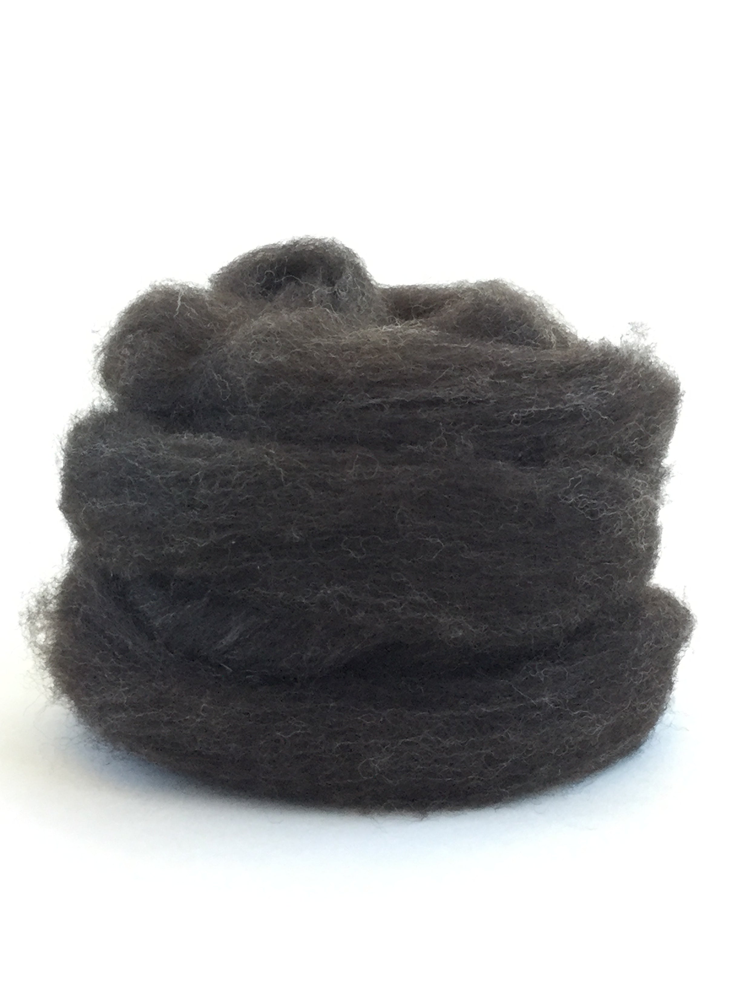 This beautiful roving is from our local Ferndale Farms. It’s a beautiful undyed natural black color. It’s perfect for needle felting, wet felting or spinning.  The price is per ounce.