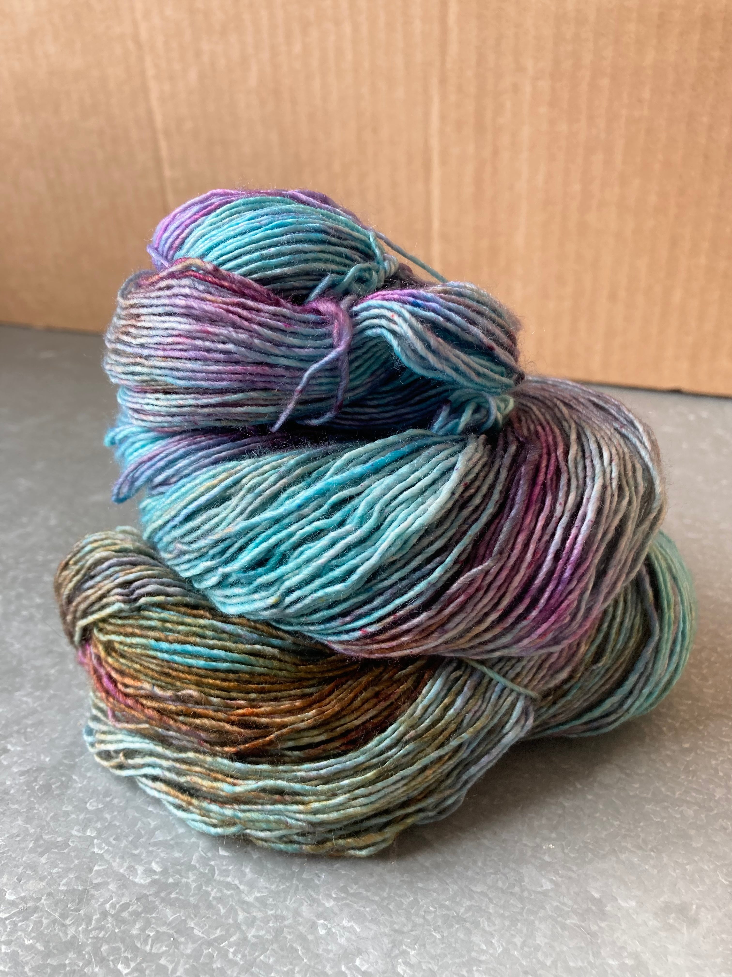 The colors of this yarn are inspired by the amazingly beautiful landscape that surrounds us here on the North Coast of California. It’s perfect for your next shawl project.