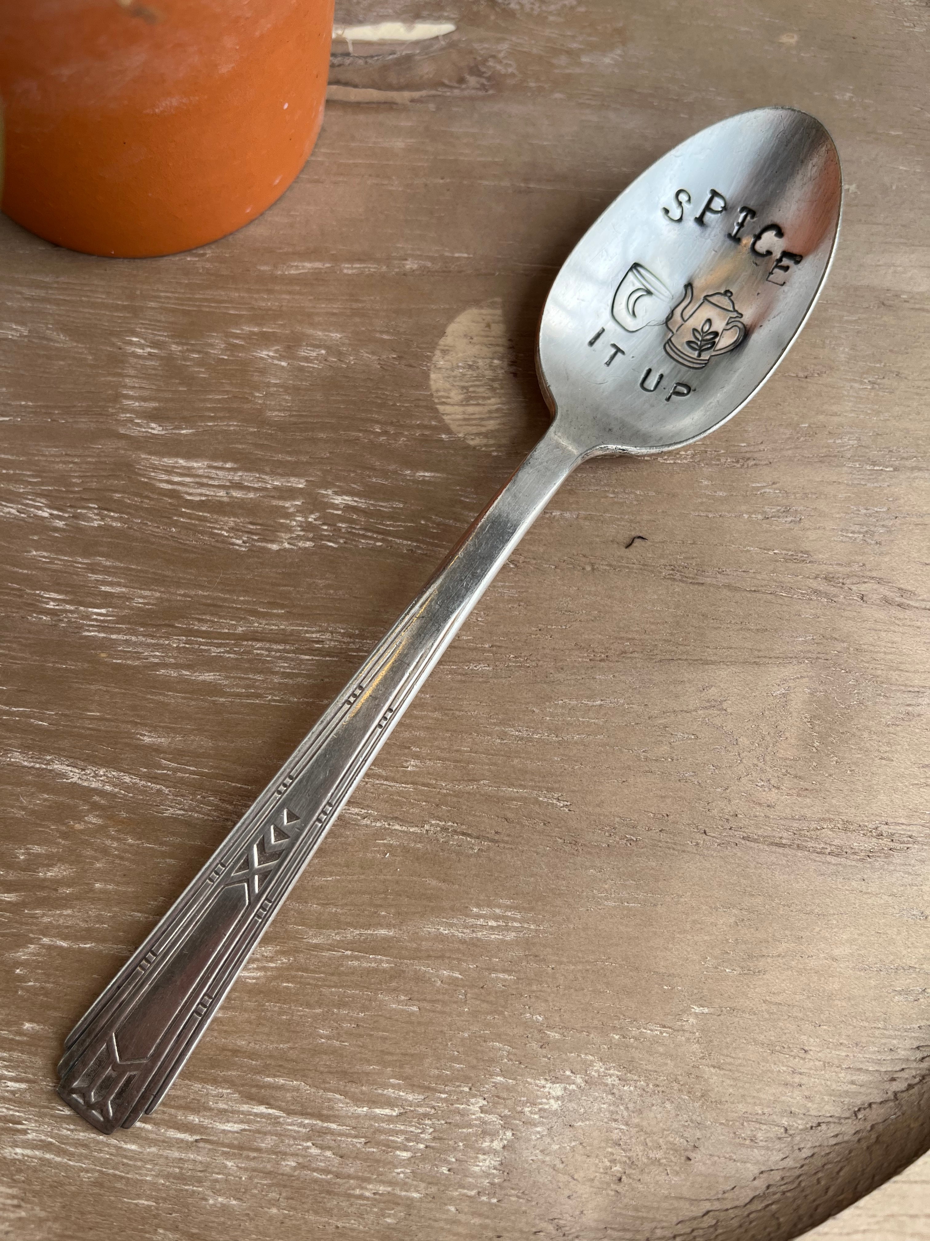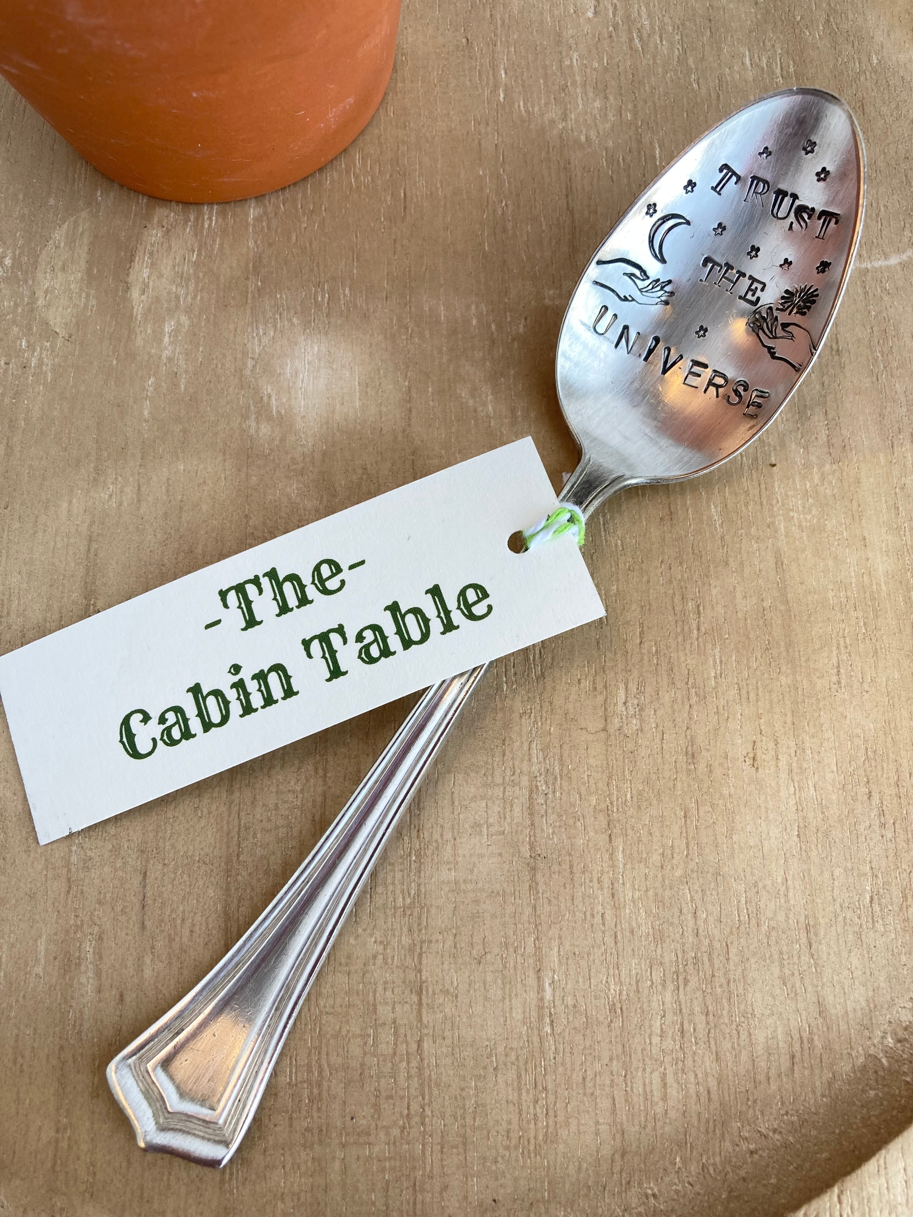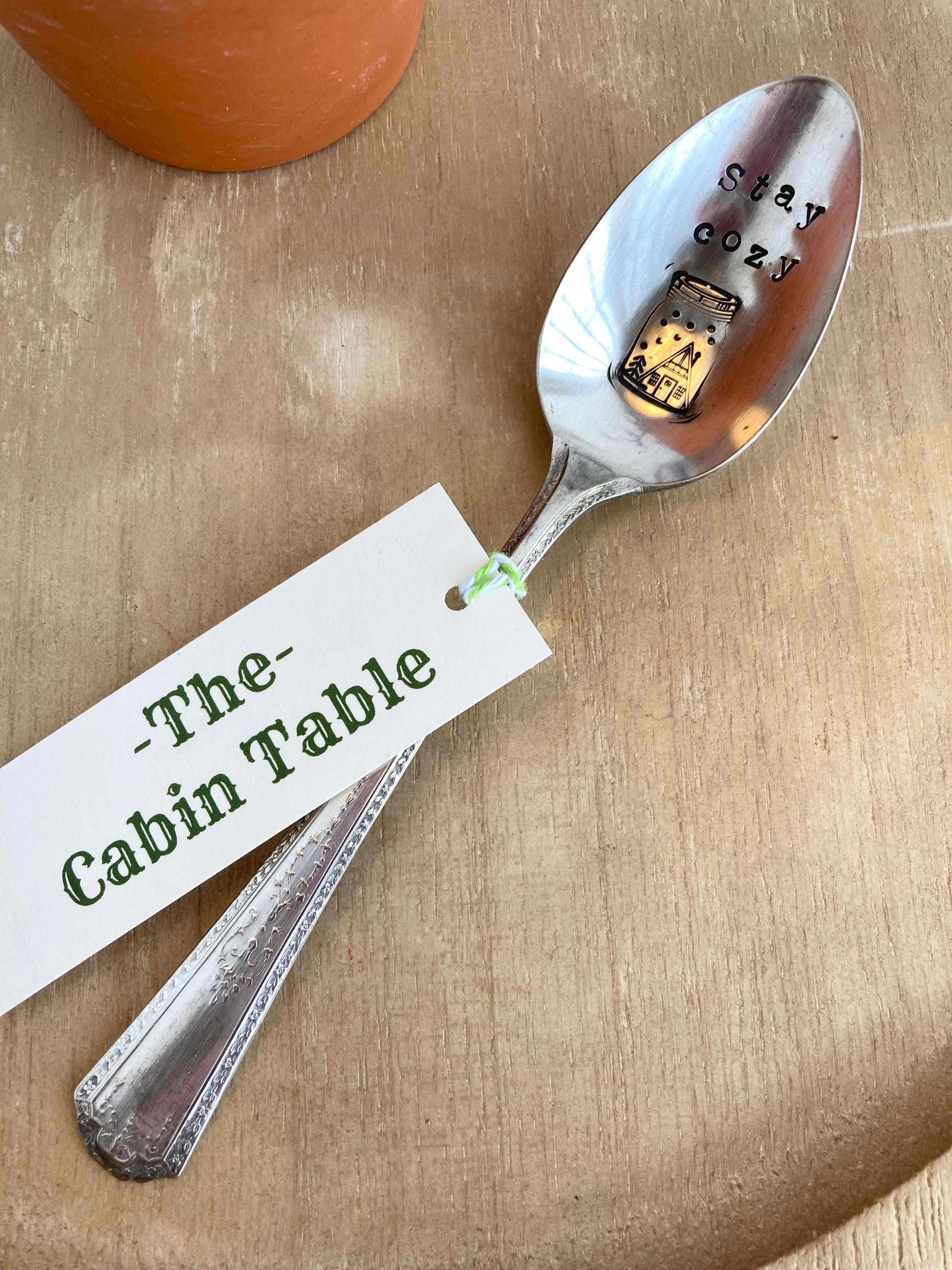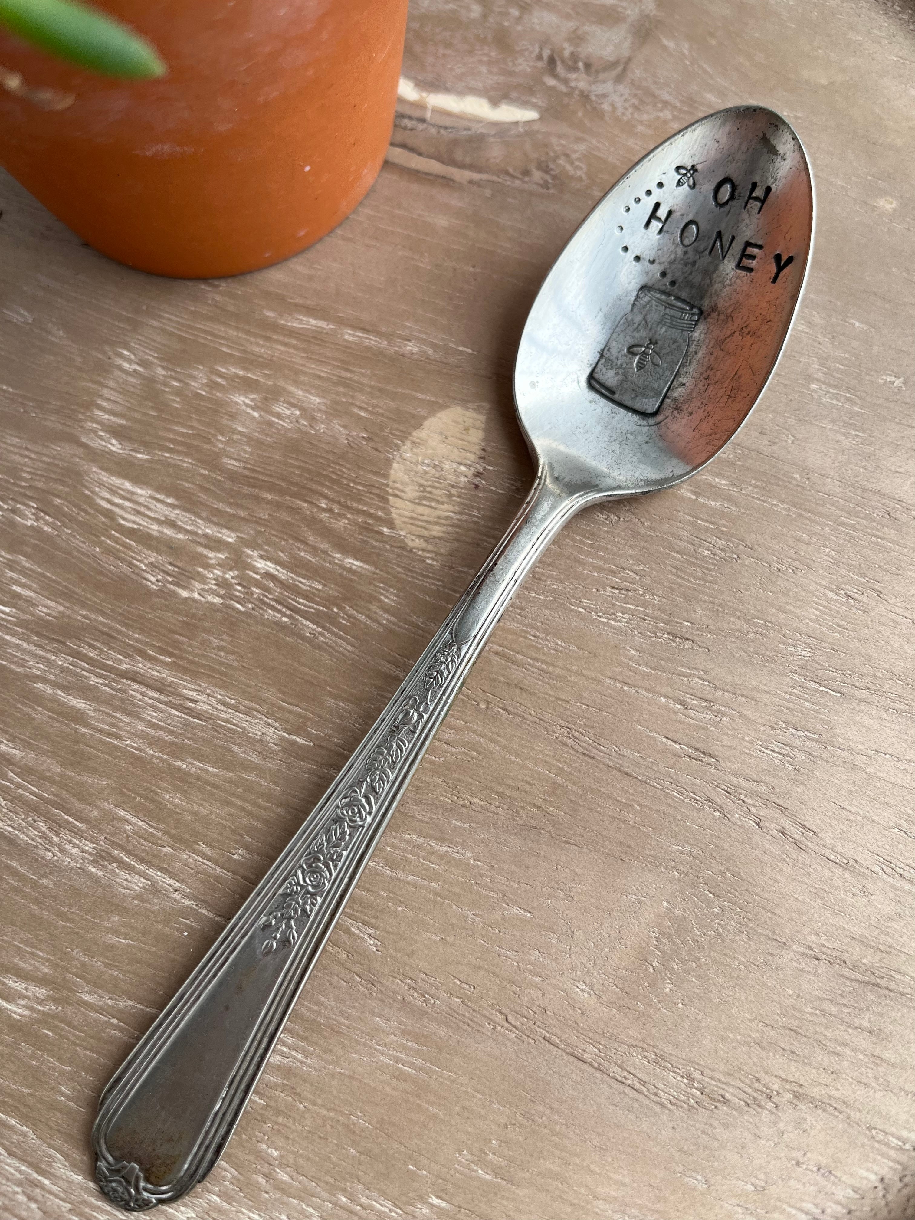 These charming silver plated spoons are stamped with images and words. They are created locally here in Humboldt. You can use these spoons to put your loose leaf tea in your teapot. put jam on your scones or to stir some honey into your cup. They make wonderful gifts.
