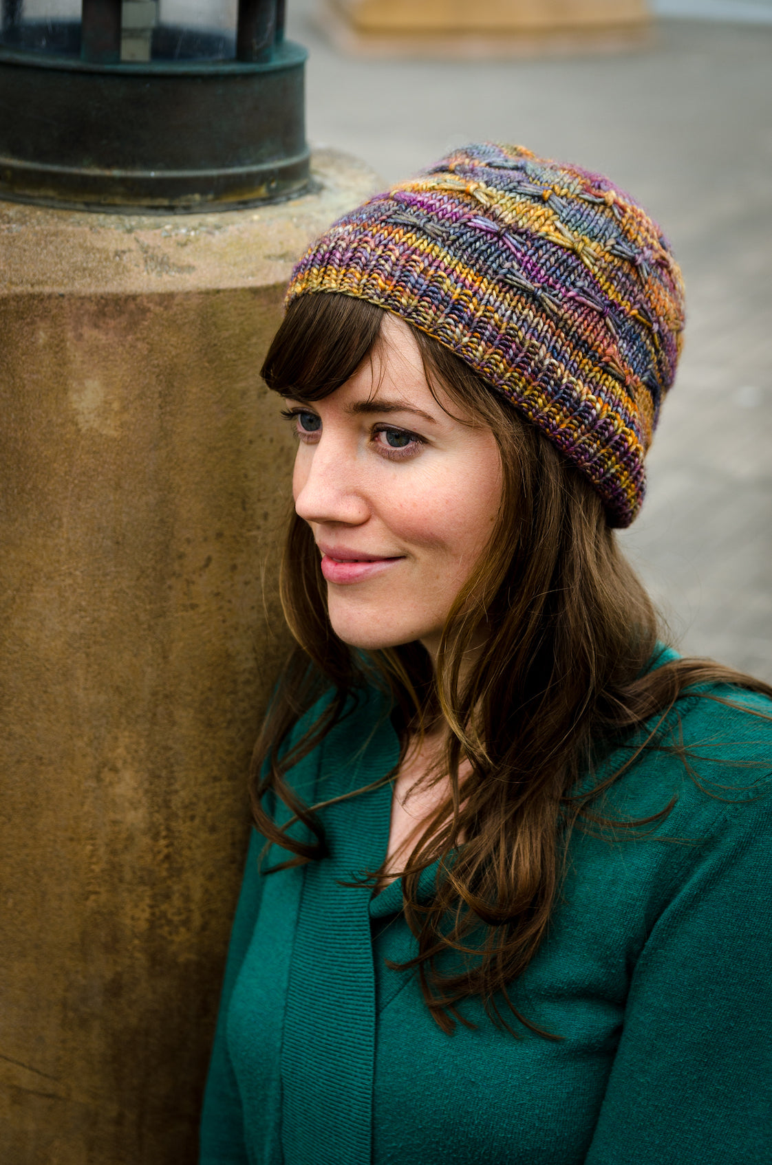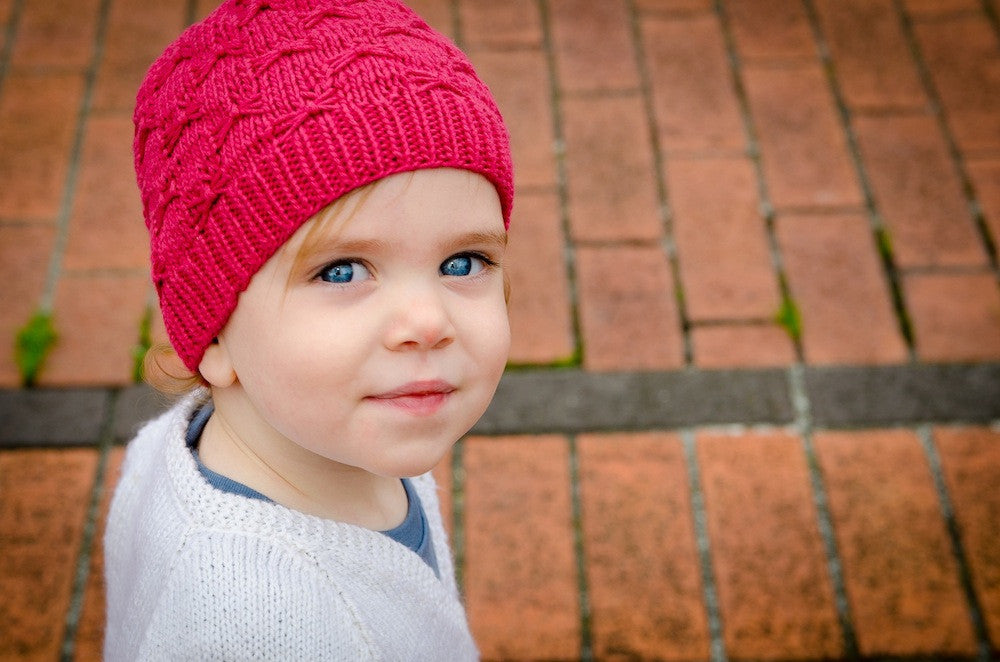 A sweet hat that works for adults or children. The slipped stitch pattern creates what look like little bows on the hat. This pattern works equally well with solid or variegated yarns. A sport weight yarn and size US 5 (3.5 mm) needles make the child's size. A DK weight yarn and size US 6 (4.0 mm) needles make the adult size.