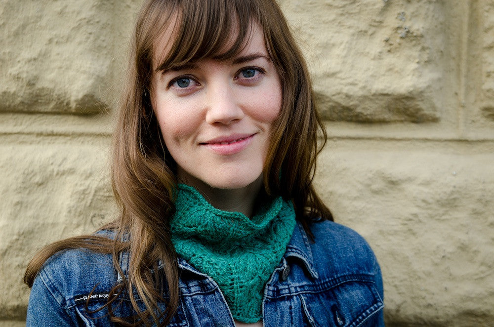 Cowls are one of our customers' favorite projects to knit and we find them to be incredibly practical to wear. This cowl matches our Trelawney’s mitts pattern. The lace leaves are delicate and pretty. We used a sport weight Rambouillet yarn and size US 5 needles.