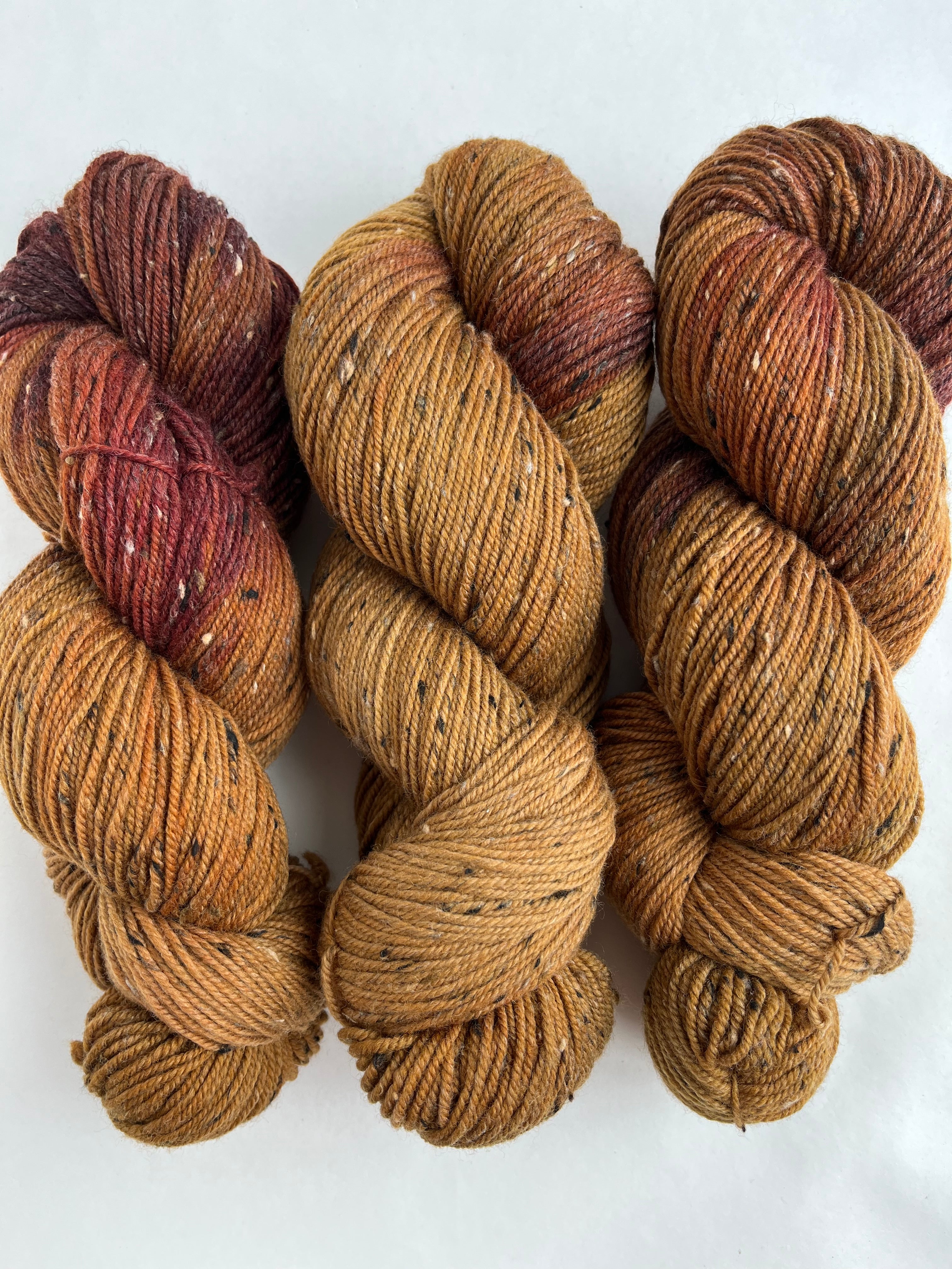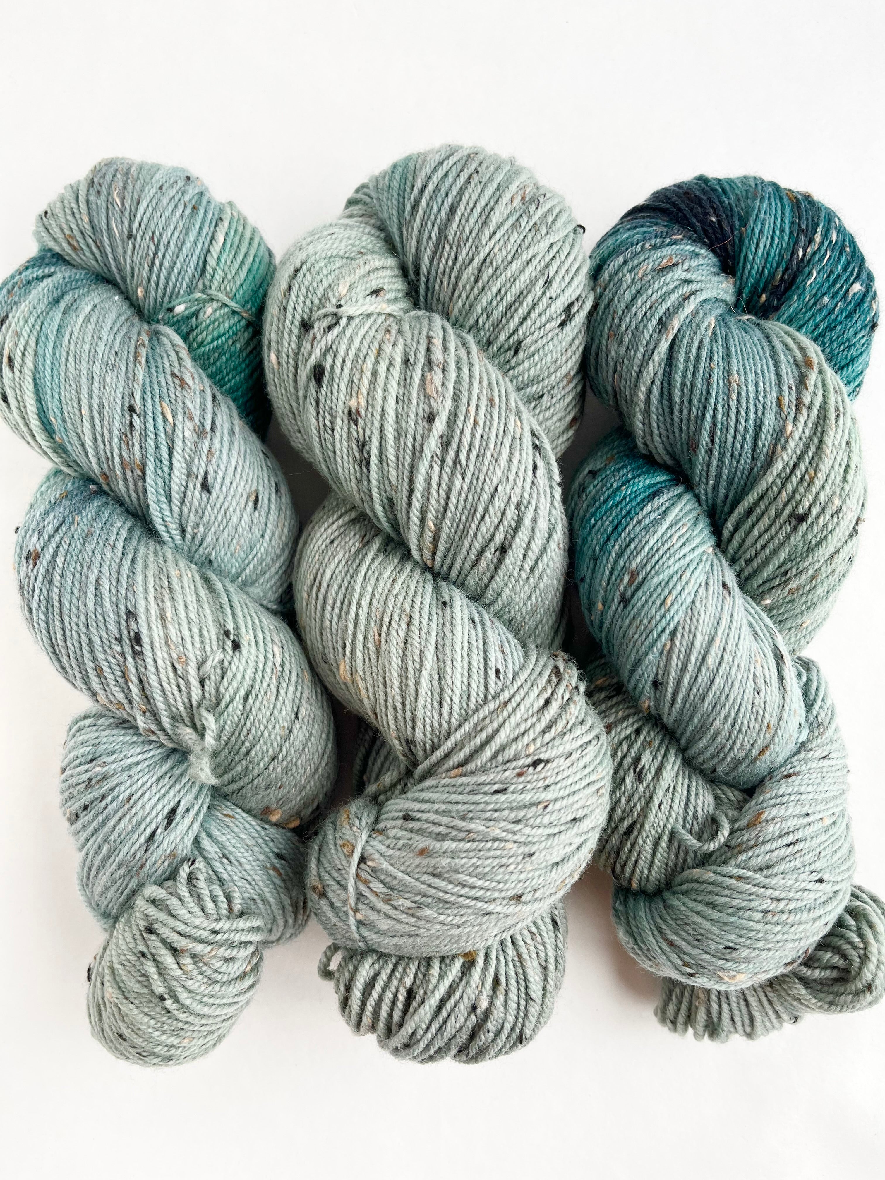 If you are a fan of Tweed yarn, this one is for you. Beautiful U.S. Shaniko merino wool tweed in a sport weight that is hand dyed right in our store! This yarn is perfect for sweaters, hats, fingerless gloves, cowls and shawls.